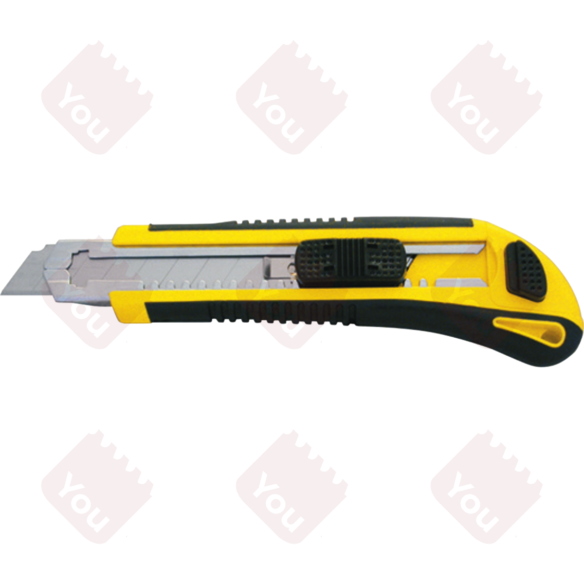 Corpo Bi-material antiscivolo. Selettore automatico della lama. Telaio in acciaio. 3 lame in dotazione. Lama a spezzare