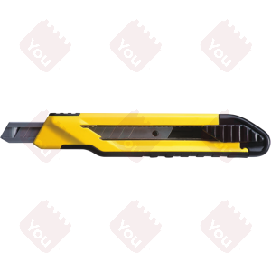 Corpo in metallo sagomato. Sistema brevettato di bloccaggio e cambio della lama. Lama a spezzare 12 elementi