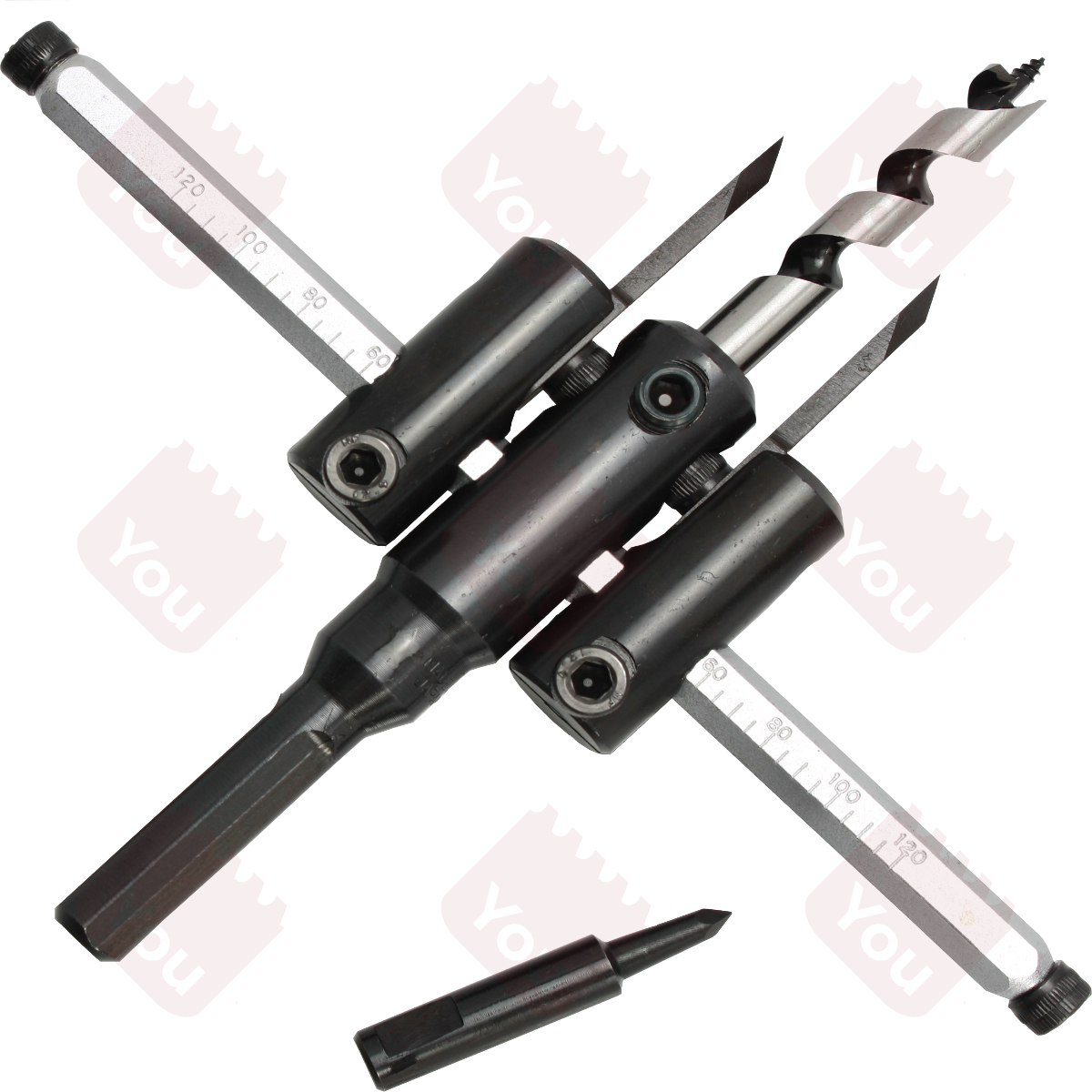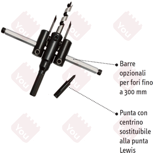 Consente di realizzare fori su misura tramite 2 bracci registrabili su un'asta graduata. Ideale per forare laminati di legno, ma anche gesso e cartongesso.