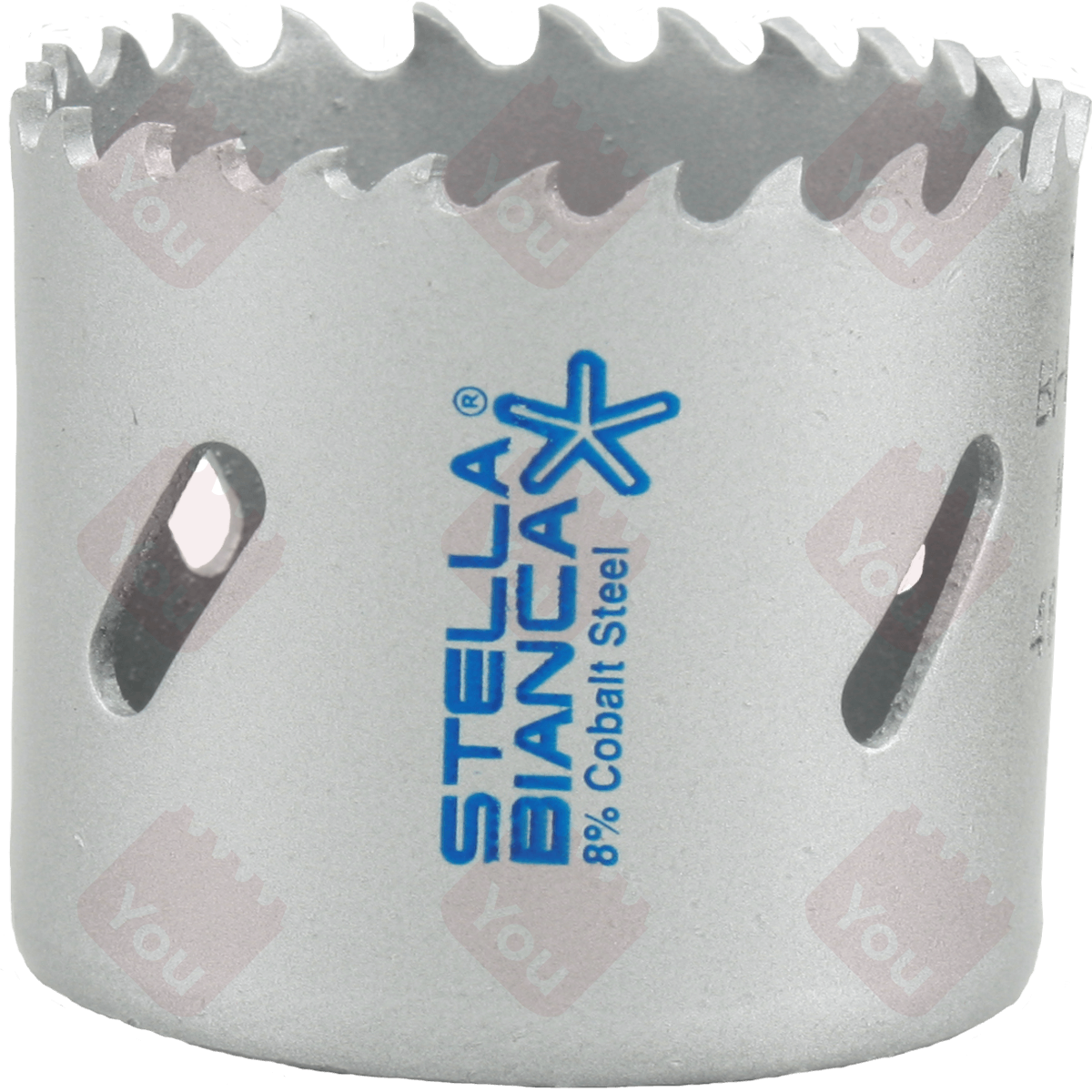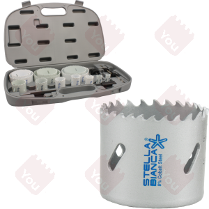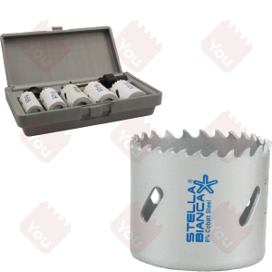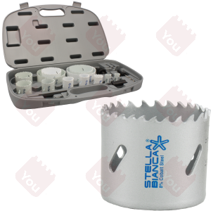 Le seghe a tazza bimetalliche Stella Bianca sono compatibili con tutti i gambi in commercio per utensili di questo tipo. Sono disponibili attacchi con e senza trascinatori, alberi lunghi e Quick-Change Stella Bianca, che si adattano a tutti i modelli di seghe in commercio, nella sezione "Accessori".