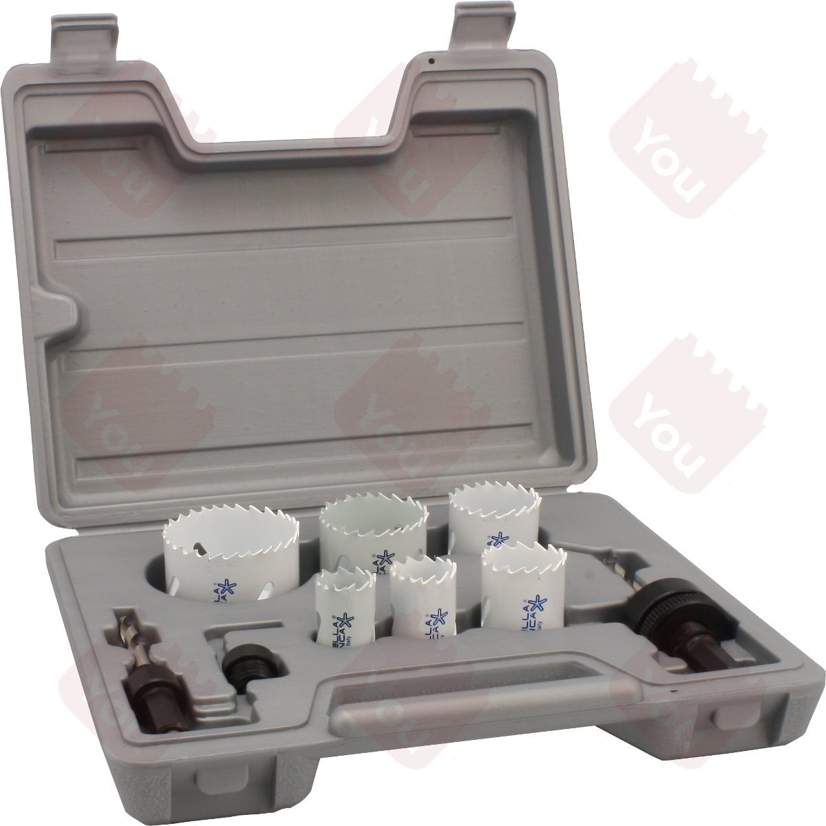 Le seghe a tazza bimetalliche Stella Bianca sono compatibili con tutti i gambi in commercio per utensili di questo tipo. Sono disponibili attacchi con e senza trascinatori, alberi lunghi e Quick-Change Stella Bianca, che si adattano a tutti i modelli di seghe in commercio, nella sezione "Accessori".