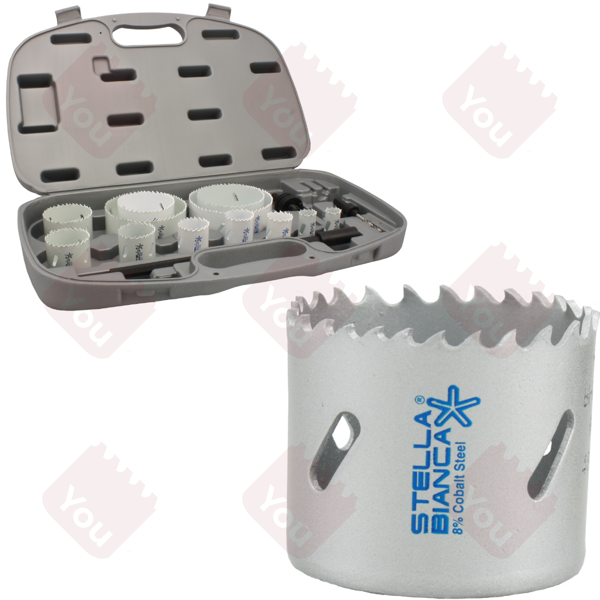 Le seghe a tazza bimetalliche Stella Bianca sono compatibili con tutti i gambi in commercio per utensili di questo tipo. Sono disponibili attacchi con e senza trascinatori, alberi lunghi e Quick-Change Stella Bianca, che si adattano a tutti i modelli di seghe in commercio, nella sezione "Accessori".