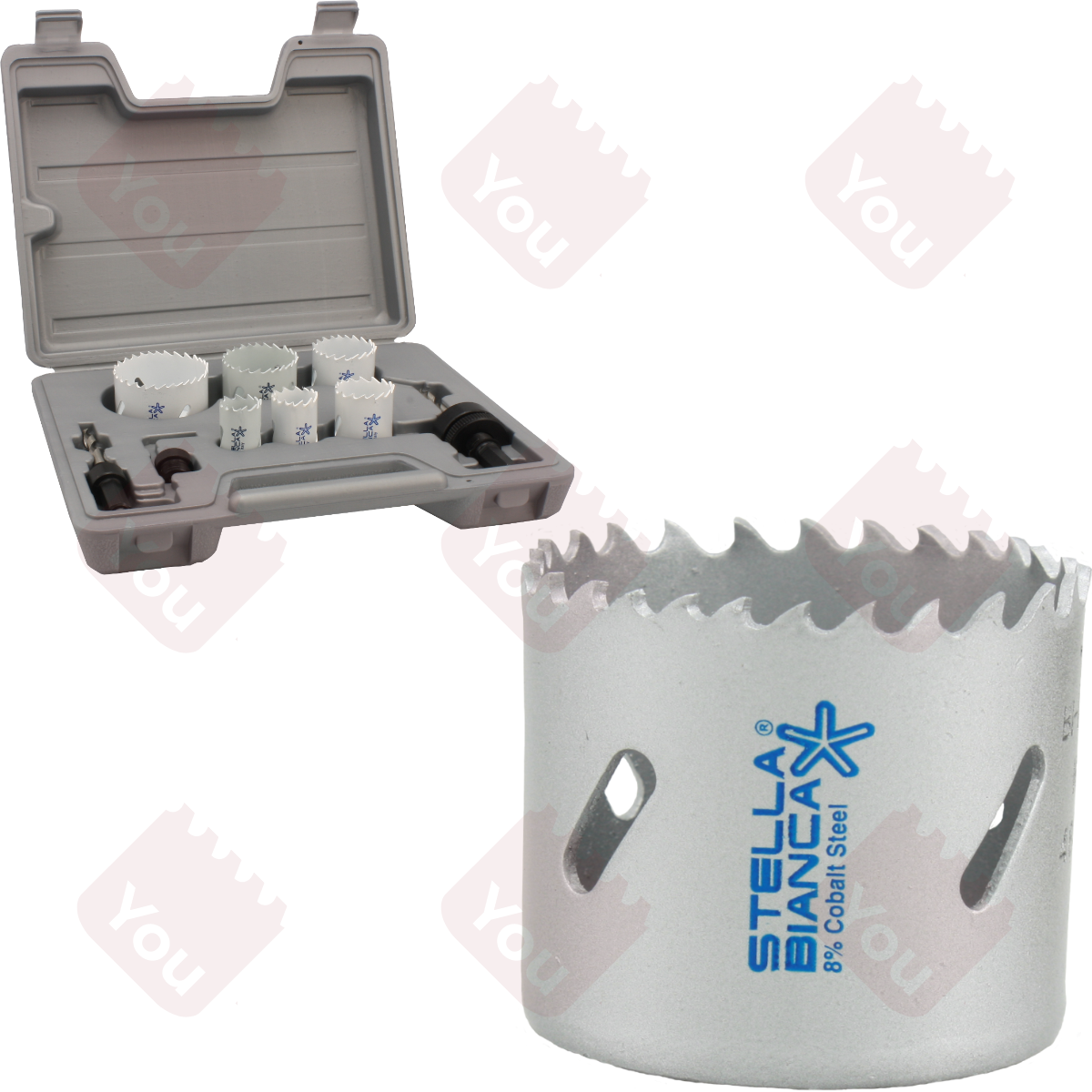 Le seghe a tazza bimetalliche Stella Bianca sono compatibili con tutti i gambi in commercio per utensili di questo tipo. Sono disponibili attacchi con e senza trascinatori, alberi lunghi e Quick-Change Stella Bianca, che si adattano a tutti i modelli di seghe in commercio, nella sezione "Accessori".