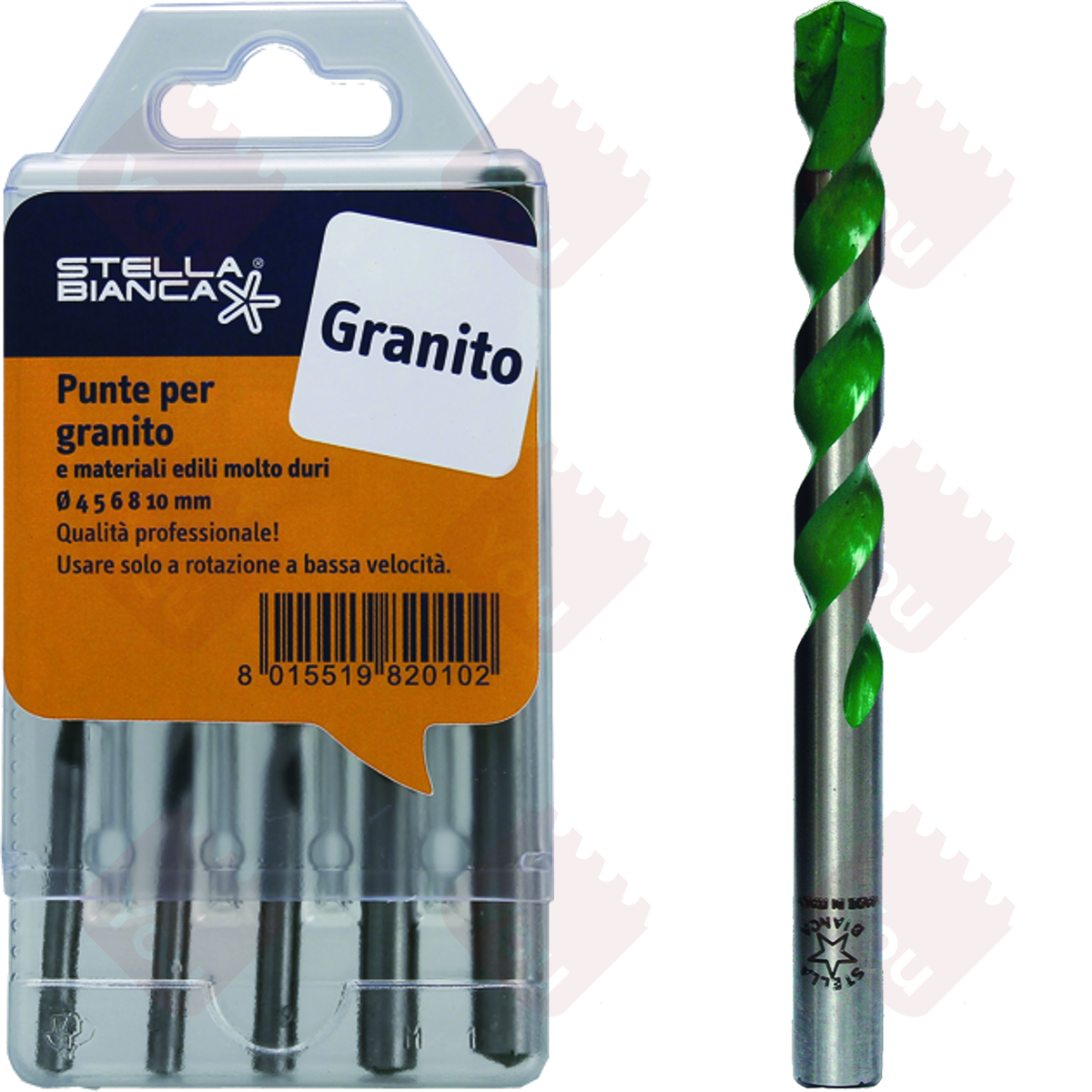 Ideali per forare granito e materiali edili molto duri. Qualità professionale, gambo cilindrico. Inclusi diametri 4, 5, 6, 8, 10 mm