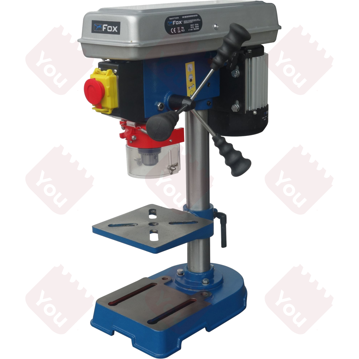 N.5 velocità mandrino 500-2500 giri-min. Mandrino a cremagliera diam.mm.13. Corsa mandrino mm.50. Piano lavoro inclinabile mm.165x165