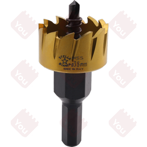 Per realizzare fori nei metalli, in particolare lamiere sottili grazie alla dentatura a passo fine, completa di gambo e punta guida