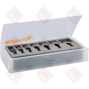 - Attacco sfaccettato per non scivolare nel mandrino (con Ø tazza > 18 mm); attacco cilindrico (con Ø tazza < 18 mm)