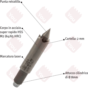 con punta retrattile, codolo cilindrico