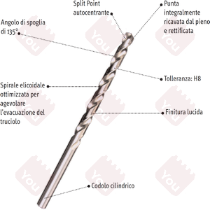 - Spirale elicoidale ottimizzata per agevolare l'evacuazione del truciolo