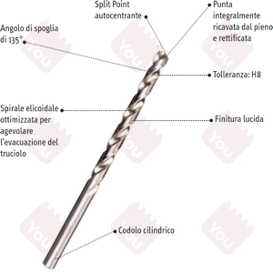 • Spirale elicoidale ottimizzata per agevolare l'evacuazione del truciolo
