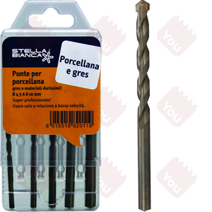 Articolo specifico per forare porcellana, gres porcellanato, granito e materiali durissimi, qualità super professionale, gambo cilindrico. Inclusi diametri 4, 5, 6, 8, 10 mm